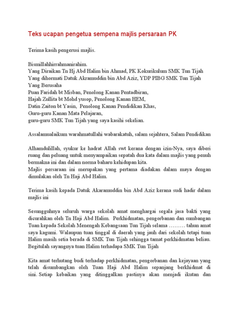 Teks Ucapan Pengetua Sempena Majlis Persaraan Pk Pdf